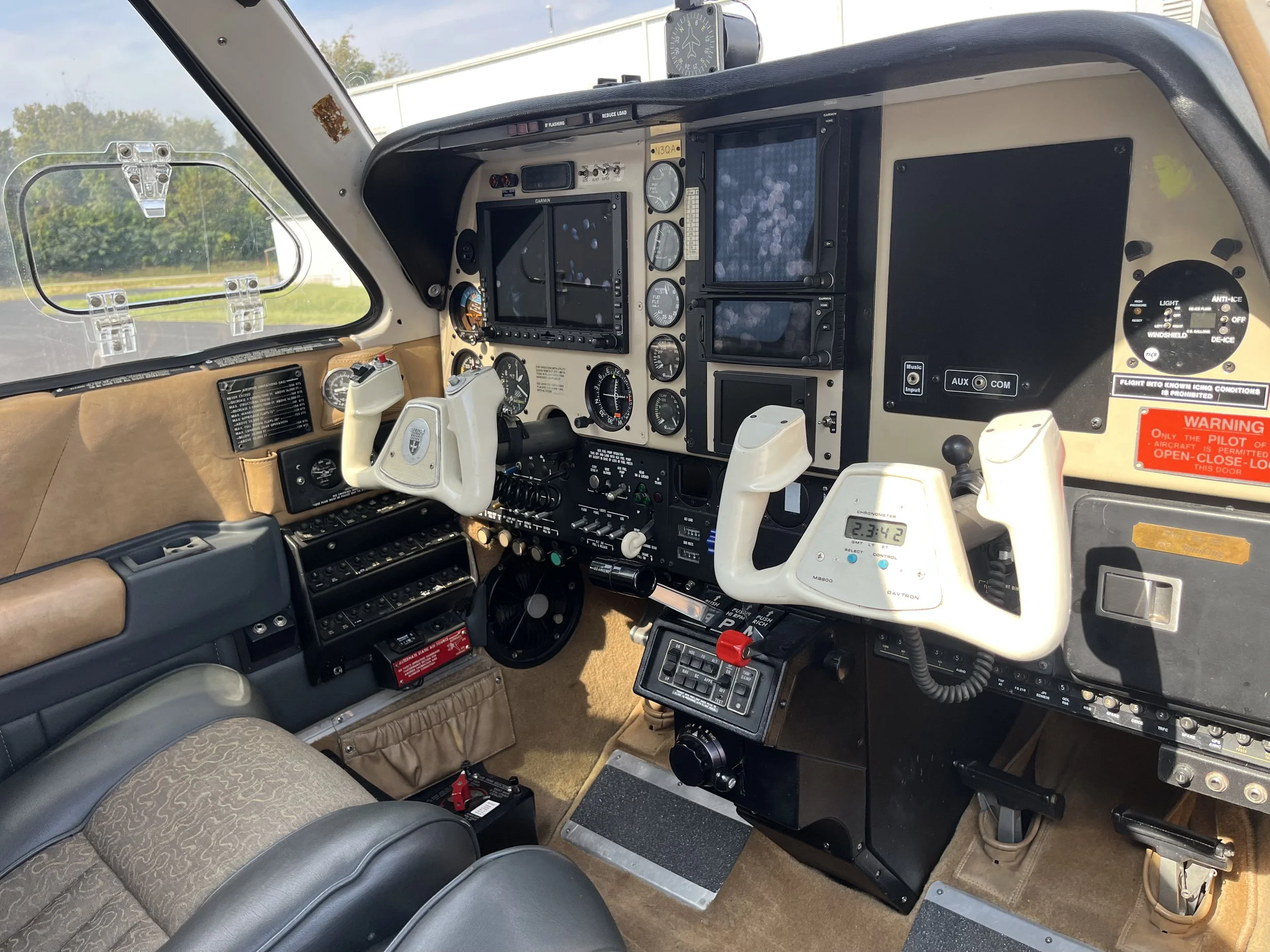 Avionics: Garmin GTN 750 touch screen, WAAS GPS/NAV/COM/MFD, Garmin GNC255A NAV/COM, Garmin GMA 340 Audio Panel, Garmin GTX 330 Transponder, Garmin GDL 88 Datalink ADSB traffic and weather, Garmin flight stream 210, Garin GI106A VOR/LOC/GS Indicator, Bendix-King KFC225 Autopilot with FD & Altitude preselect, Bendix-King KCS55A Slaved HSI, JPI EDM 900 Engine Monitor, Mid-Continent 4300 Standby Attitude Indicator, Davtron M800 Digital Chronometer, Standby Vacuum System.