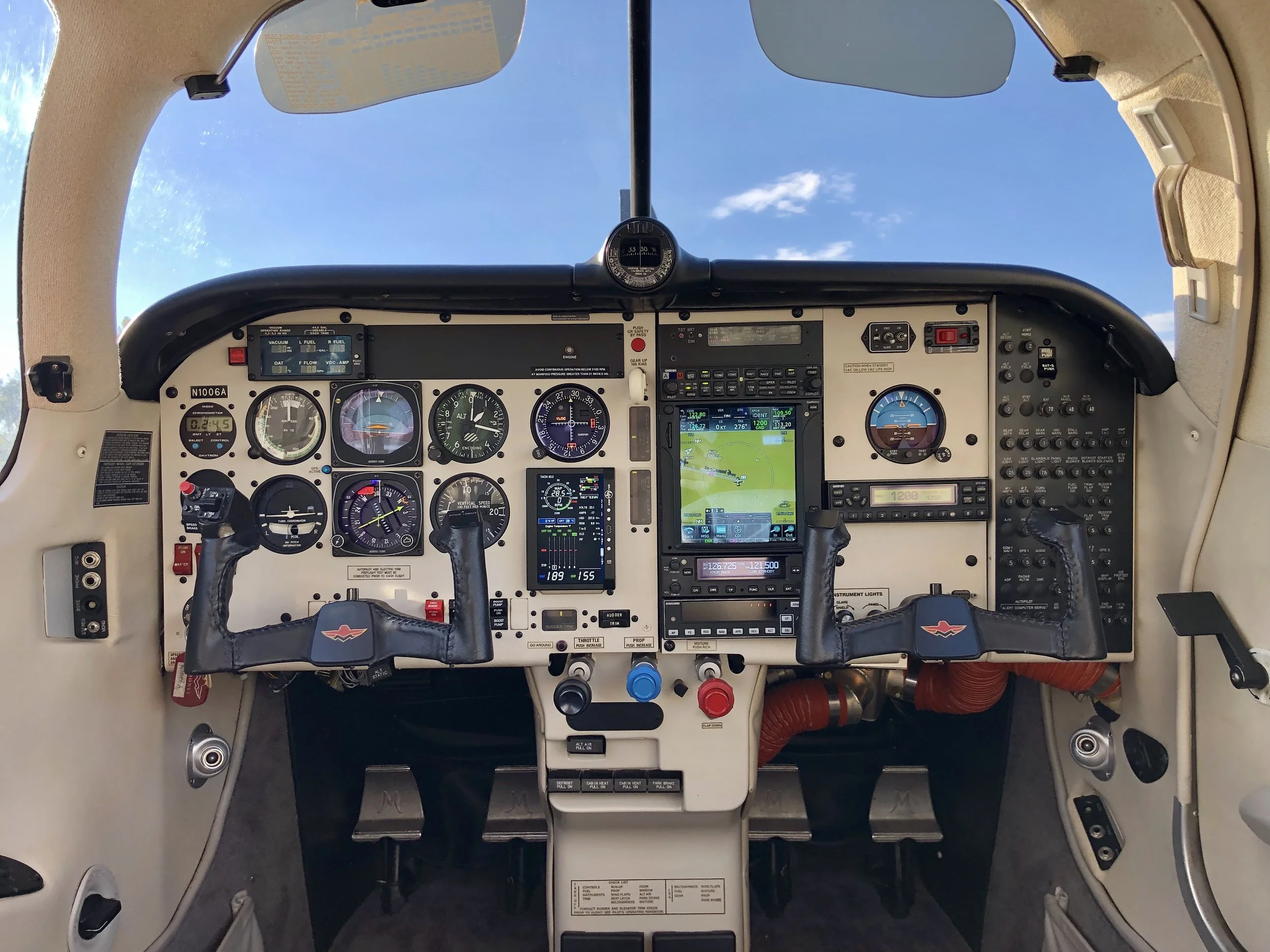 Garmin GMA 340 switching panel. Garmin 430/530 gps coms. Dual (that’s right!!!) Dual MX200 displays. Garmin es330 transponder. Vision Microsystems engine monitor.
